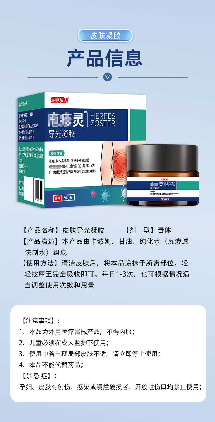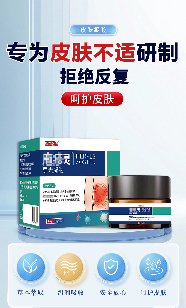 皰疹靈導(dǎo)光凝膠,多種草本原材,適用于皮膚不適,使用簡單,適量均勻涂抹,源頭廠家,加工定制