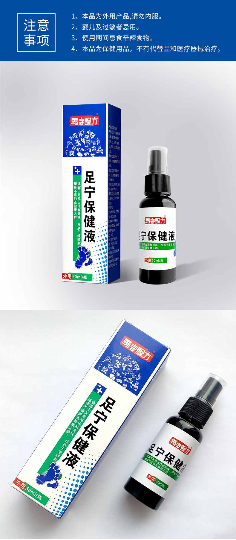馬寺驗(yàn)方足寧保健液,針對(duì)腳部各種問(wèn)題,植物萃取精華,快速緩解足部不適,遠(yuǎn)離腳癢腳臭,使用方便,分量足,源頭噴劑生產(chǎn)廠家,支持噴劑加工oem貼牌個(gè)性化定制,可代理批發(fā),出貨快。