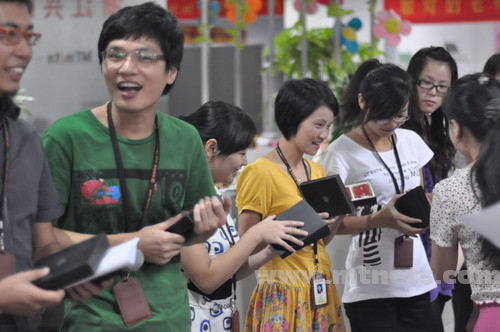 參加興旺寶明通八周年慶征文的同學(xué)們獲得了精美的皮夾,喜笑顏開。