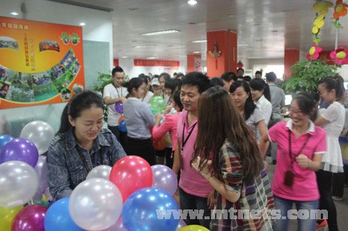 下午,“幸運九九九”的活動火熱開展。公司每位伙伴都可以得到一個五彩繽紛的氣球,而其中一些同事的氣球里面是有幸運獎品的,在主持人的號召下,大家喊出:勢如破竹不可擋,興旺寶來年更火爆,大家一起“爆”。辦公室一瞬間仿佛鞭炮齊鳴般,充滿了歡樂的氣氛。吃著寓意展翅高飛的雞翅,喝著百事可樂,抱得獎品歸。