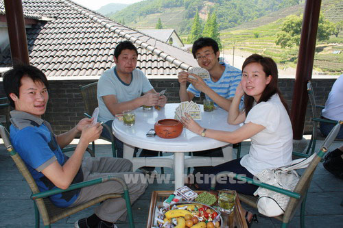 坐在大大的樓臺上一邊打牌一邊欣賞風(fēng)景