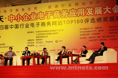 電子商務專家、行業(yè)網(wǎng)站精英和中小企業(yè)代表近千人齊聚一堂,共同探討“推廣企業(yè)電子商務應用、促進行業(yè)網(wǎng)站創(chuàng)新發(fā)展”的相關系列問題。億邦動力網(wǎng)總編輯劉宸現(xiàn)場講解《中國B2B行業(yè)電子商務網(wǎng)站調(diào)查報告(2008-2009)》,我國B2B網(wǎng)站總數(shù)已經(jīng)超過5100家,年服務收入約190億,就業(yè)人數(shù)約35萬。垂直類行業(yè)網(wǎng)站的服務收入已經(jīng)占到整個服務產(chǎn)業(yè)的近70%,專業(yè)行業(yè)網(wǎng)站更有發(fā)展前景。電子商務之路,危機中的管理革命等主題演講熱情激昂,令人深思。專場論壇邀請行業(yè)網(wǎng)站和企業(yè)高層代表現(xiàn)場互動,圍繞成為B2B時代的改變、垂直行業(yè)網(wǎng)站的危與機、行業(yè)網(wǎng)站過冬實戰(zhàn)研討、企業(yè)B2B交易服務戰(zhàn)略等主題展開。與會嘉賓對行業(yè)電子商務應用及發(fā)展等話題各抒己見,共享各個行業(yè)及企業(yè)電子商務發(fā)展經(jīng)驗,激烈探討行業(yè)網(wǎng)站模式、中小企業(yè)電子商務危機突圍。明通科技代表積極參與互動,與現(xiàn)場嘉賓交流行業(yè)網(wǎng)站對中小企業(yè)及時高效的扶持舉措。