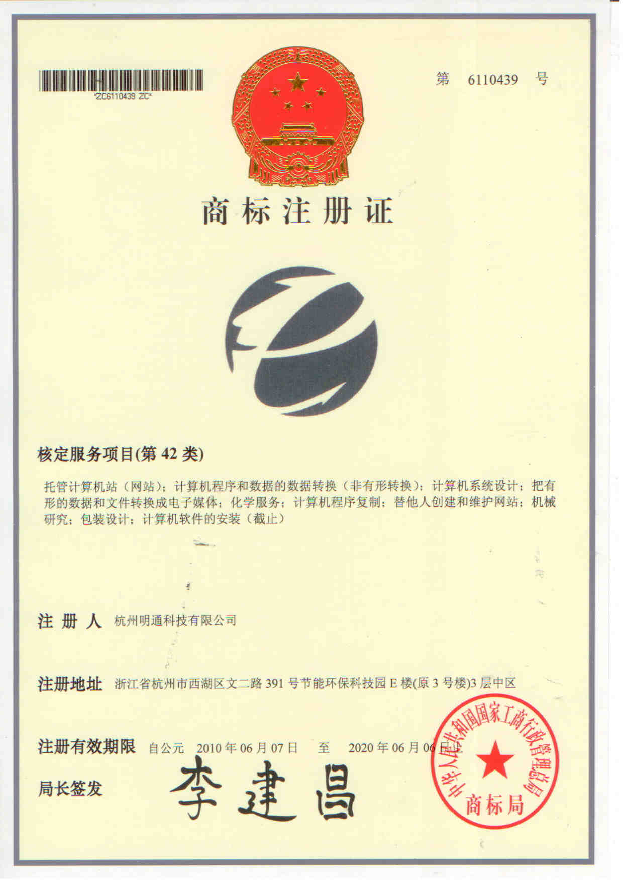 品牌提升競爭力,明通科技一直致力于商標(biāo)品牌戰(zhàn)略。歷時三年多的商標(biāo)注冊申請,2010年6月7日經(jīng)國家商標(biāo)局批準(zhǔn)的公司圖案正式通過注冊商標(biāo)申請,并核發(fā)商標(biāo)注冊證。