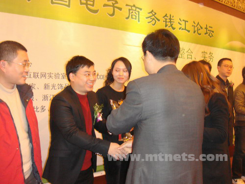 2011年1月11日,由杭州市經(jīng)濟(jì)委員會主辦、杭州市中小企業(yè)服務(wù)中心承辦的“第一屆中國電子商務(wù)錢江論壇”在杭州新僑飯店隆重舉行。杭州市政府副秘書長趙立康,市經(jīng)委副主任郝志毅出席論壇。數(shù)百家電子商務(wù)企業(yè)熱情參會,寒冷的杭城冬日里呈現(xiàn)出電子商務(wù)的火熱氛圍。明通科技作為知名電子商務(wù)平臺運(yùn)營商受邀出席,并獲得了“十佳最具創(chuàng)新價(jià)值電子商務(wù)企業(yè)”殊榮。