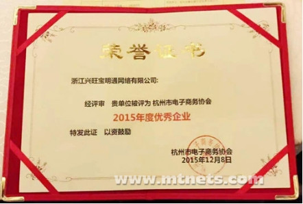 興旺寶明通榮獲“2015年度杭州電子商務(wù)優(yōu)秀企業(yè)”稱號(hào)
