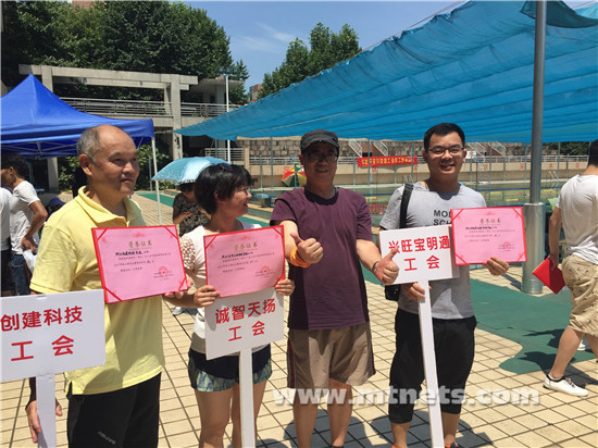 出乎意料的是我們的選手最終取得了非常漂亮的成績,江軍林男子100米獲得第三名,他已經(jīng)參加好幾屆了,之前一直和獎勵無緣,總結(jié)原因是體能差,去年開始他成了運動達人,公司的健身房簡直給他承包了,而女子50米選手徐生香是今年入職的新員工,一到夏天就有固定游泳的習(xí)慣,最終也取得女子第三名。有他們兩位坐鎮(zhèn),最終四人接力取得第二名。三項總分興旺寶代表隊獲得團體第一名,這是參賽以來歷年最好成績,驚喜的收獲。