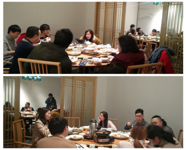 隨后,恰巧踩著午餐時間點,小伙伴們便駕車至銀泰城一家特色餐廳開始了午餐時刻。在大家吃得盡興之時,小編想偷拍一下大家“狼吞虎咽”吃飯照片,殊不知小伙伴們吃飯都很“優(yōu)雅”,哈哈......