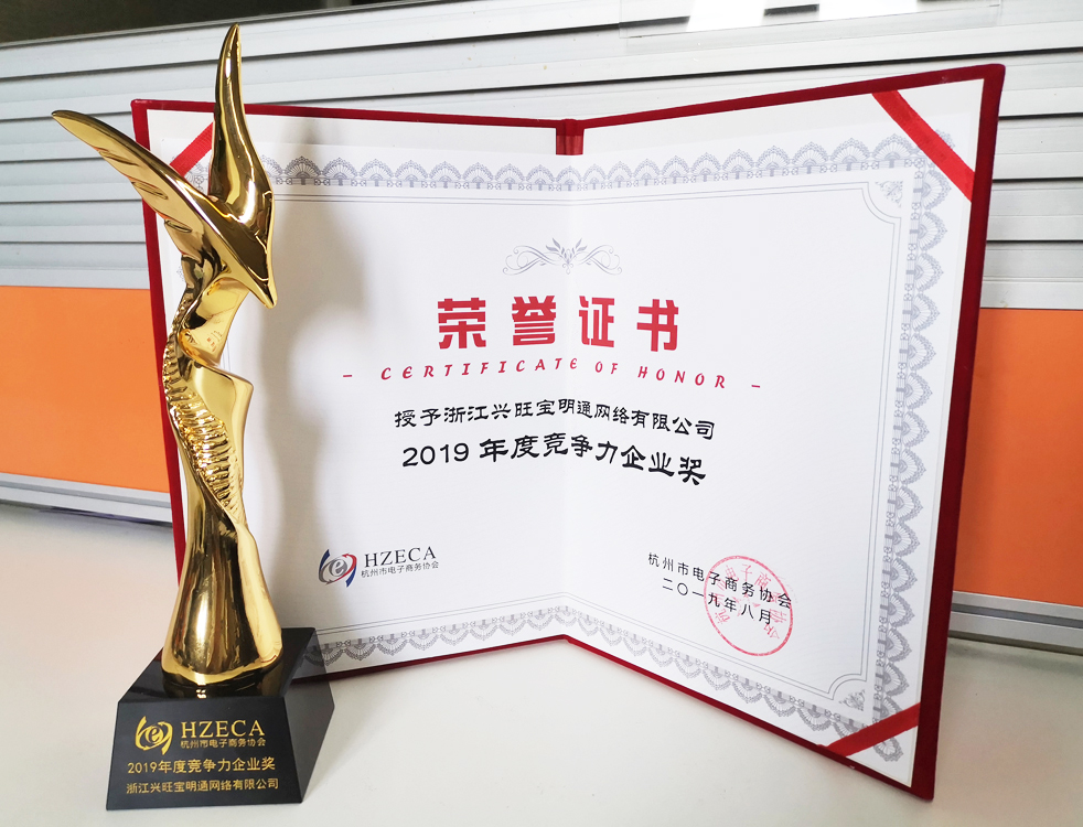 浙江興旺寶明通網(wǎng)絡有限公司榮獲2019年度競爭力企業(yè)獎”