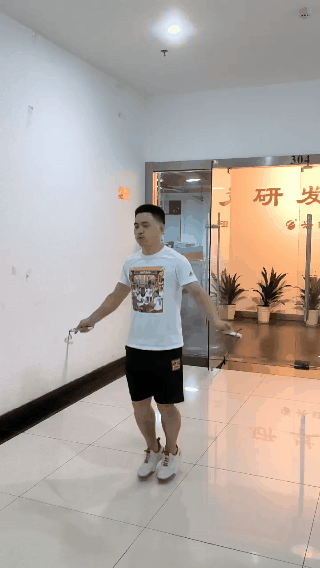 在結(jié)束一天的工作后,參賽者便來(lái)到了指定的場(chǎng)地進(jìn)行備賽訓(xùn)練。每每這時(shí),空曠的場(chǎng)地總是擠滿了圍觀群眾。短短的一分鐘,充斥著緊張和活力,也交織著歡樂(lè)與汗水。繩如虹飛轉(zhuǎn),人似蝶翩躚,在閃轉(zhuǎn)騰挪之間,跳繩變幻出美麗的弧線,一圈又一圈地劃過(guò),計(jì)數(shù)器上的數(shù)字也在不斷刷新著……