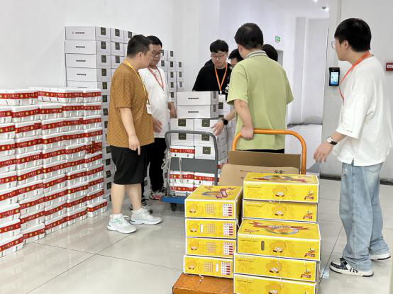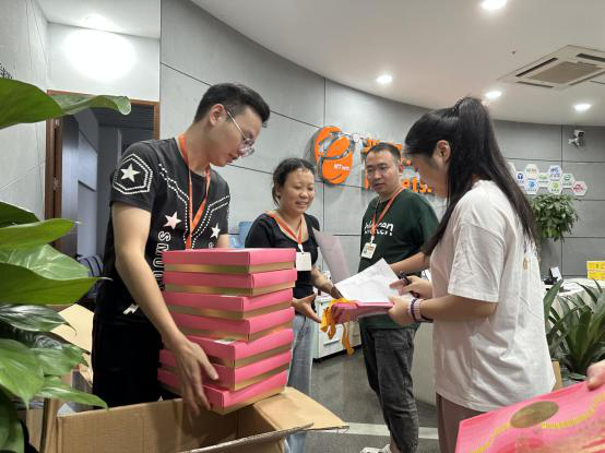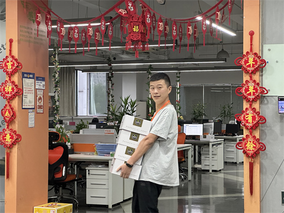 為保證中秋福利及時(shí)發(fā)放,公司將禮品一一搬至前臺(tái),各部門員工陸續(xù)前來(lái),推著推車搬運(yùn)禮品,行政部人員仔細(xì)清點(diǎn),絕不漏掉每一個(gè)小伙伴的禮品,現(xiàn)場(chǎng)歡聲笑語(yǔ)一片,洋溢著濃濃的節(jié)日氛圍。